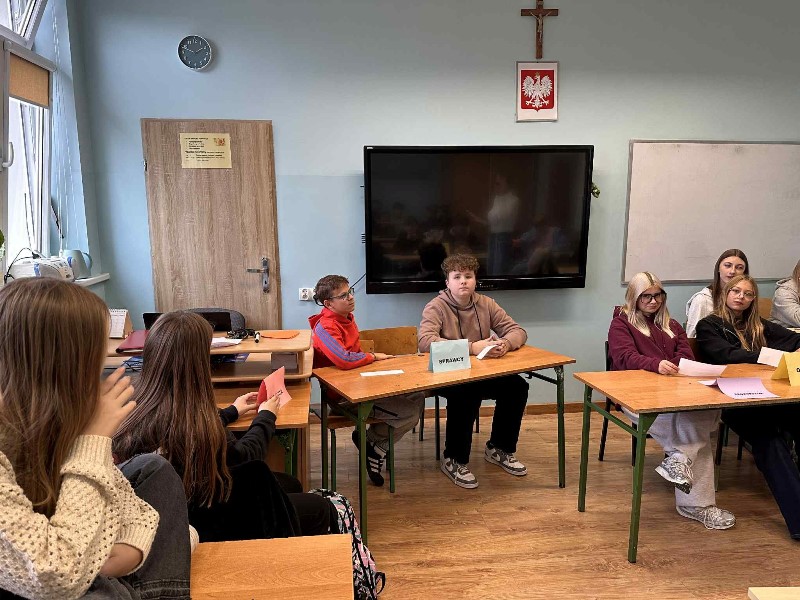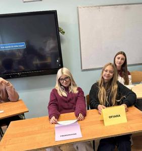 #HejtStop Nasza sala lekcyjna zamieniła się w prawdziwą salę rozpraw. Uczniowie wcielili się w role ofiary, sprawcy, świadków, prokuratora i obrońcy, aby wspólnie rozpatrzyć sytuację przemocy rówieśniczej. Zajęcia miały ogromny wymiar praktyczny i edukacyjny – pozwoliły spojrzeć na problem hejtu z różnych perspektyw, uświadomiły konsekwencje krzywdzących zachowań i pokazały, jak ważna jest profilaktyka. Dziękujemy uczniom za aktywne i dojrzałe zaangażowanie podczas zajęć!