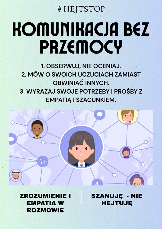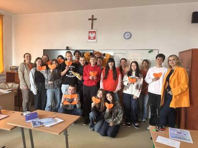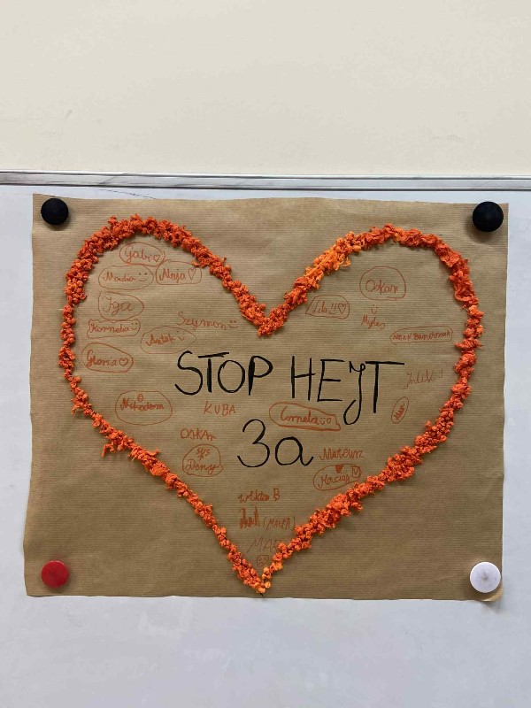 W czwartek w naszej szkole zrobiło się naprawdę pomarańczowo! Nasi uczniowie ubrali się na ten kolor, aby wspólnie powiedzieć STOP HEJT i okazać solidarność z ofiarami przemocy rówieśniczej. Pani psycholog Anna Sołtys-Stawowa oraz panie pedagożki Magdalena Graczyk i Linda Jung rozmawiały z uczniami o idei Porozumienia bez Przemocy – jak rozmawiać z innymi z szacunkiem i empatią, aby budować dobre relacje. Każda klasa otrzymała również pamiątkowy plakat , który będzie przypominał o najważniejszych zasadach komunikacji.