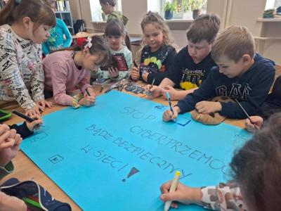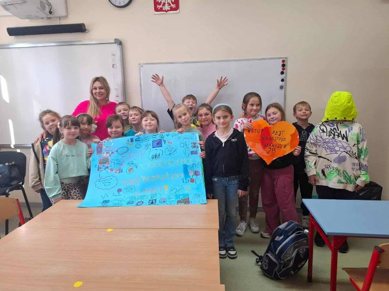 Rozpoczęliśmy od audycji radiowej, która wprowadziła nas w temat całego tygodnia. Wspólnie obchodziliśmy Dzień Pomarańczowy – symbol solidarności z osobami, które doświadczają przemocy. Na godzinach wychowawczych rozmawialiśmy o hejcie, reagowaniu na przemoc i o tym, jak wspierać innych. Każda klasa otrzymała plakaty „ABC komunikacji bez przemocy” – z praktycznymi wskazówkami i elementami psychoedukacji. Na zakończenie pojawiła się Pomarańczowa Skrzynka mająca na celu zebranie informacji do kogo uczniowie mogą zwrócić się o pomoc doświadczajac przemocy rówieśniczej. Serdecznie dziękujemy wszystkim za aktywny udział, otwartość i zaangażowanie. Razem tworzymy szkołę, w której każdy chce czuć się bezpiecznie!