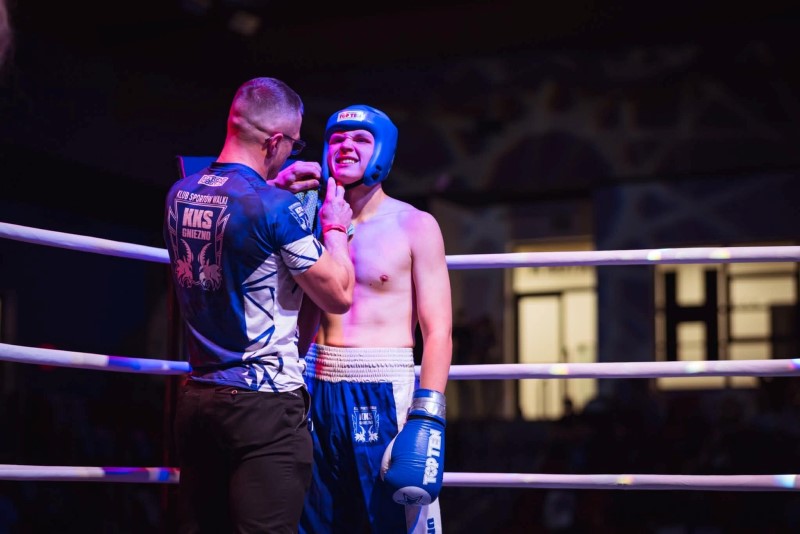 Kilka dni temu w Gnieźnie odbywało się ważne wydarzenie sportowe FIGHT NIGHT Gniezno 2, a pewnie niewielu z nas zdaje sobie sprawę, że jednym z uczestników i to odnoszącym sukcesy jest nasz uczeń Oliwier Urbaniak z klasy 8c. Oliwier ćwiczy okolo 1,5 roku i w tym czasie w barwach klubu KKS Sporty Walki Gniezno udało się jemu wywalczyć 3 miejsce w Mistrzostwach Polski w kickboxing'u w formule light contact, 3 miejsce w Mistrzostwach Polski Młodzików i Młodziczek. W ostatnim czasie walczył na jednej z najlepszych gal kickboxing w tym roku w polskiej gali FIGHT NIGHT GNIEZNO 2, w której niestety musiał uznać wyższość przeciwnika. Życzymy Oliwierowi wielu sukcesów! Pewnie jeszcze o nim usłyszymy! Jesteśmy dumni, że Oliwier potrafi łączyć naukę z pasją do walki fair. Brawo!