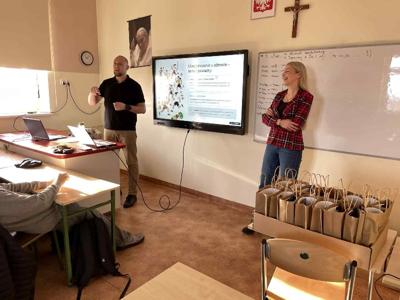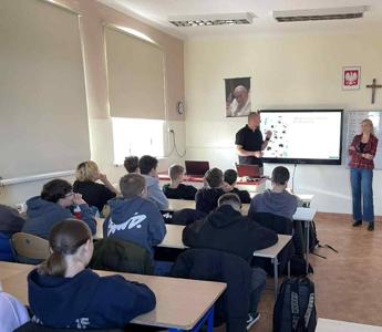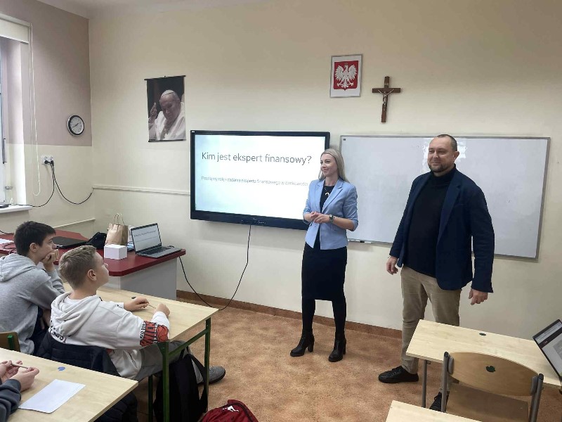 W dniach 24 oraz 31 października klasę 8a odwiedzili: Pani Paulina oraz Pan Dawid, którzy są ekspertami finansowymi firmy LENDI. Pierwsze spotkanie upłynęło głównie na rozmowach dotyczących zagrożeń związanych z płatnościami internetowymi i możliwościami ich zabezpieczenia. Na drugim spotkaniu natomiast nasi goście zaprezentowali różne typy ubezpieczeń. Ważną kwestią poruszaną w tym dniu była kwestia dotycząca hejtu oraz dbałości o zdrowie. Spotkania były bardzo ciekawe, a nasi uczniowie aktywnie uczestniczyli w zajęciach . Na zakończenie czekała na uczniów miła niespodzianka- goście wręczyli wszystkim uczestnikom zajęć upominki. Poprzednia wizyta w Sklepie Polskim, a także spotkanie z przedstawicielami firmy LENDI ma uczyć, inspirować oraz pokazać różne ścieżki rozwoju naszym uczniom. Dzięki takim spotkaniom staje się to łatwiejsze. Bardzo dziękujemy Pani Paulinie oraz Panu Dawidowi za poświęcony czas i przekazanie wielu cennych informacji. Mamy nadzieję, że na tych dwóch inicjatywach nie poprzestaniemy i uda nam się zorganizować kolejne spotkania.