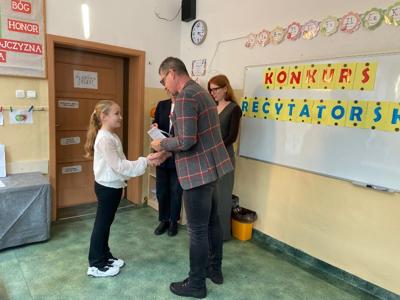 Wczoraj w naszej szkole odbył się Konkurs Recytatorski klas III, w którym udział wzięli uczniowie klas 3A oraz 3B. Uczestnicy zaprezentowali wybrane przez siebie utwory poetyckie, wykazując się piękną dykcją, interpretacją oraz odwagą sceniczną. Komisja miała trudne zadanie, ponieważ wszystkie występy były na bardzo wysokim poziomie. Ostatecznie przyznano trzy nagrody za najlepsze prezentacje: I miejsce - Gabriela Macioszek kl. 3b, II miejsce - Maciej Gadziński kl. 3a, III miejsce - Marek Tylczyński kl. 3a. Serdecznie gratulujemy zwycięzcom oraz wszystkim uczestnikom konkursu! Dziękujemy również nauczycielom za przygotowanie uczniów i zachęcanie do rozwijania talentów.