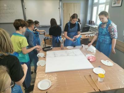Dziękujemy pani Aleksandrze i naszym uczniom za dzieło malowane