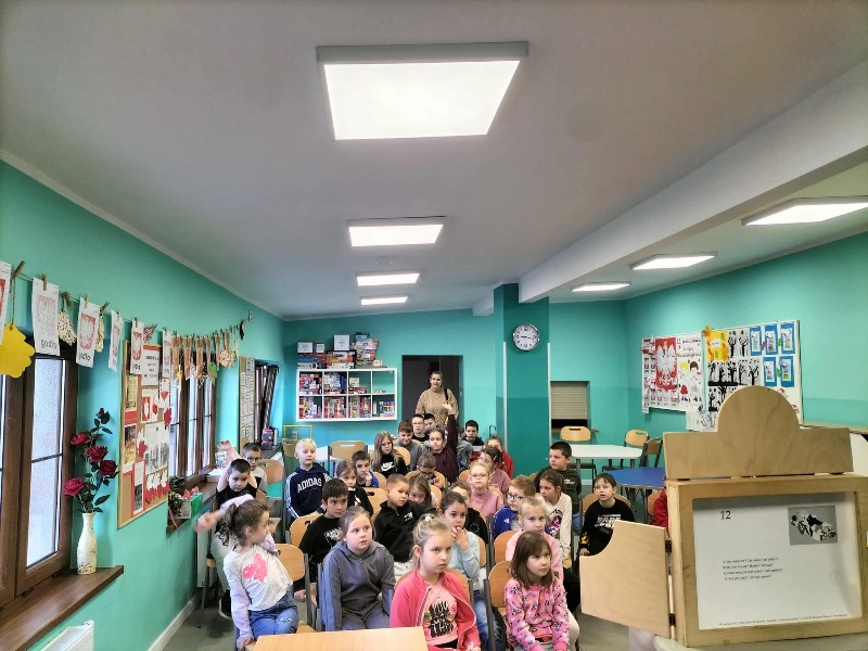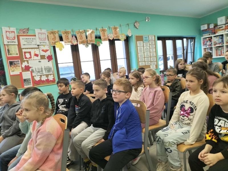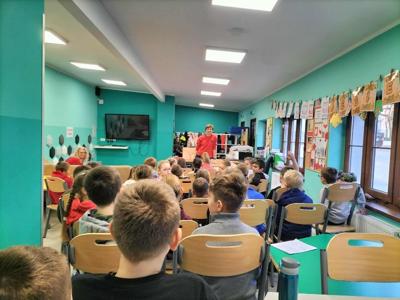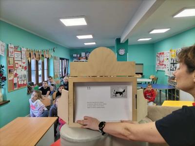 Świetlica szkolna zaprosiła dziś naszych uczniów w magiczną podróż do świata japońskich opowieści. Stało się to możliwe dzięki Pani Magdalenie z Publicznej Biblioteki Pedagogicznej w Gnieźnie, która odwiedziła naszą szkołę. Dzieci z ogromnym zainteresowaniem i nieukrywaną ciekawością oglądały teatrzyk kamishibai pt. ,,W lustrzanej sali". Dziękujemy Pani Magdzie za fascynująca podróż po świecie japońskich opowieści!