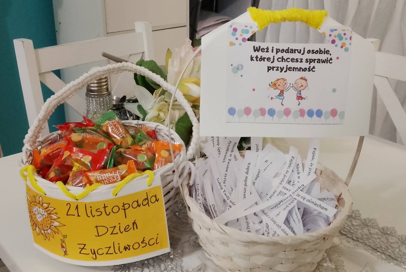 Dzień Życzliwości – 21 listopada. Tego dnia w szkolnych korytarzach panowała wyjątkowo ciepła atmosfera. Uczniowie Samorządu Uczniowskiego rozdawali pracownikom i uczniom karteczki z życzliwymi słowami, co sprawiło, że był to naprawdę piękny i pełen uśmiechów czas.