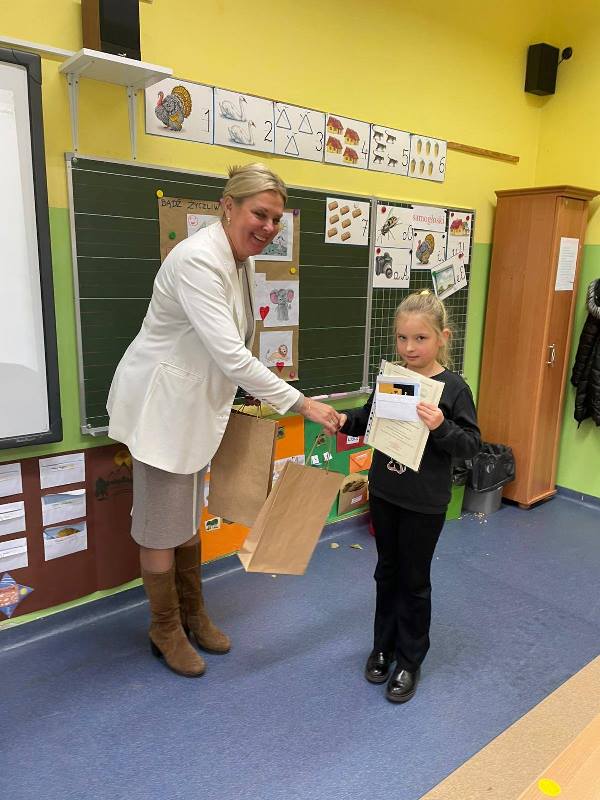 Z nieukrywaną radością informujemy, że dwie uczennice z naszej szkoły: Gabriela Macioszek, Amelia Marciniak zostały laureatkami powiatowego konkursu plastycznego: ,, Moja wizyta w gabinecie stomatologicznym" zorganizowanym w ramach wojewódzkiego projektu edukacyjnego ,,Mam zdrowe zęby ". Podziękowania za uczestnictwo w konkursie i gratulacje zostały przesłane do naszej szkoły od Państwowego Powiatowego Inspektora Sanitarnego w Gnieźnie. Natomiast laureatkom dyplomy i upominki zostały osobiście wręczone przez Panią z Powiatowej Stacji Sanitarno -Epidemiologicznej w Gnieźnie. Dziękujemy! My również dziękujemy wszystkim uczniom, którzy wzięli udział w konkursie i gratulujemy sukcesu.
