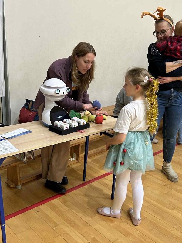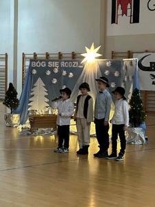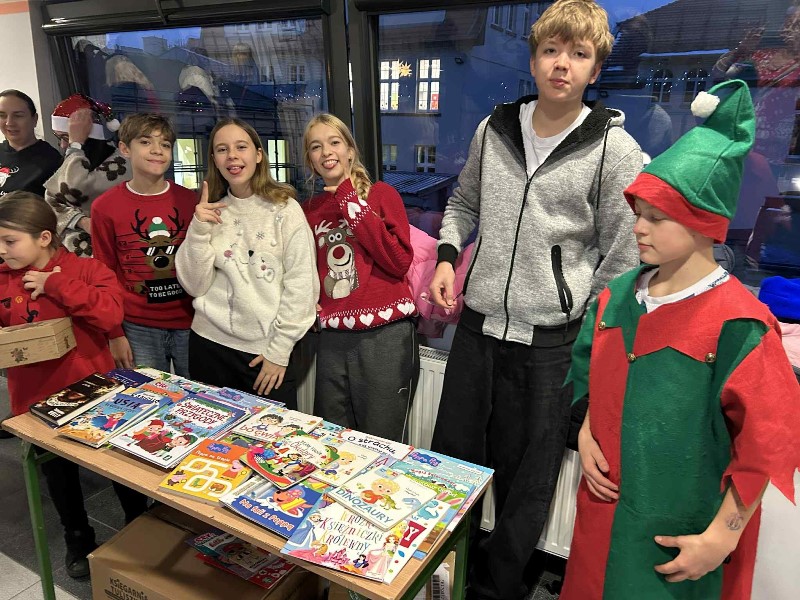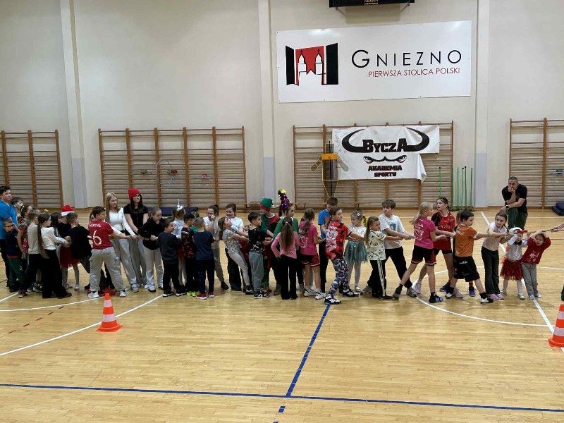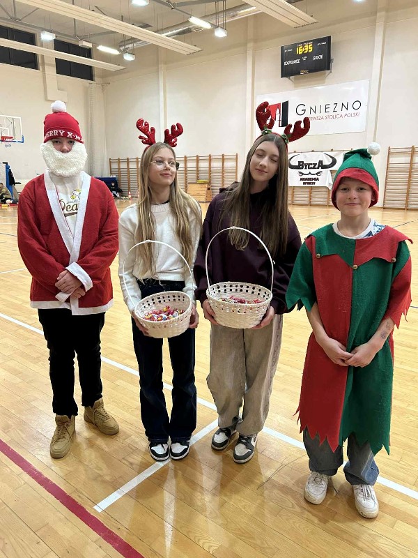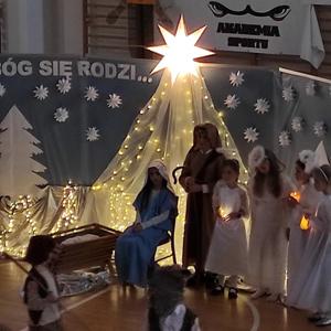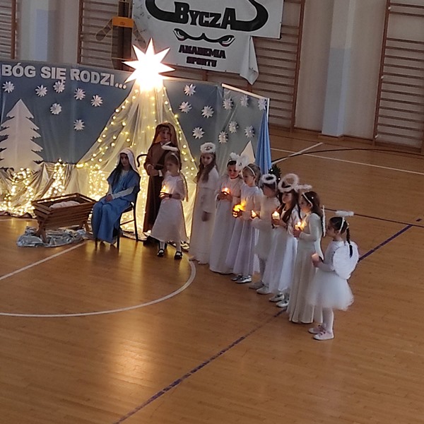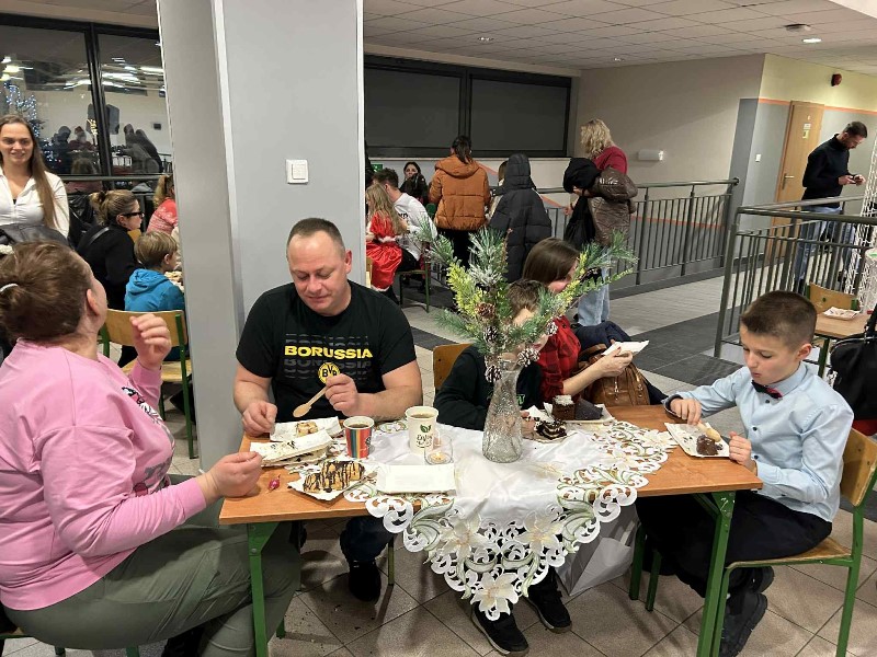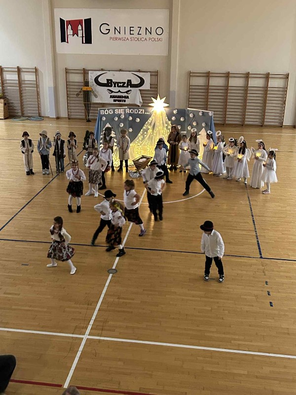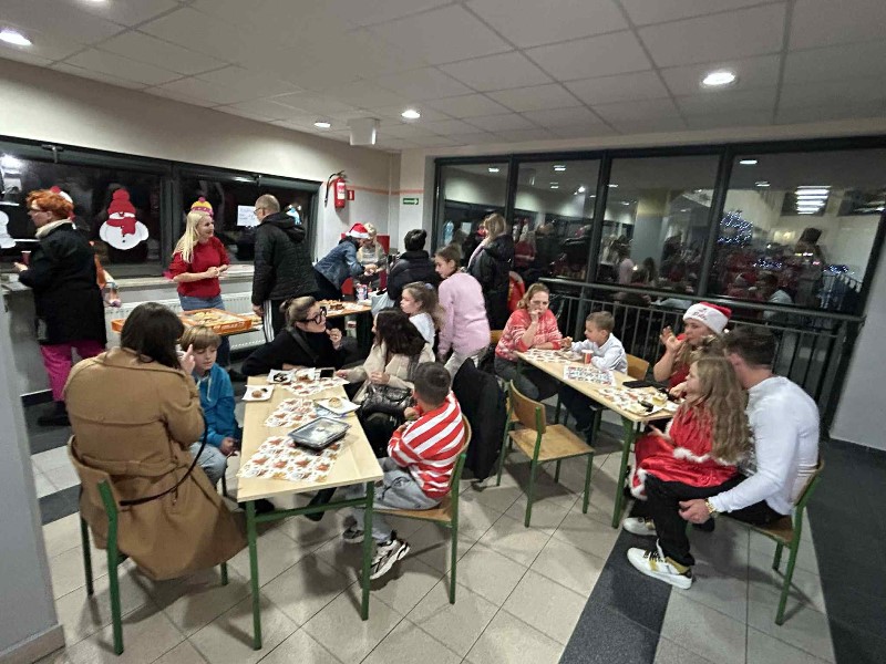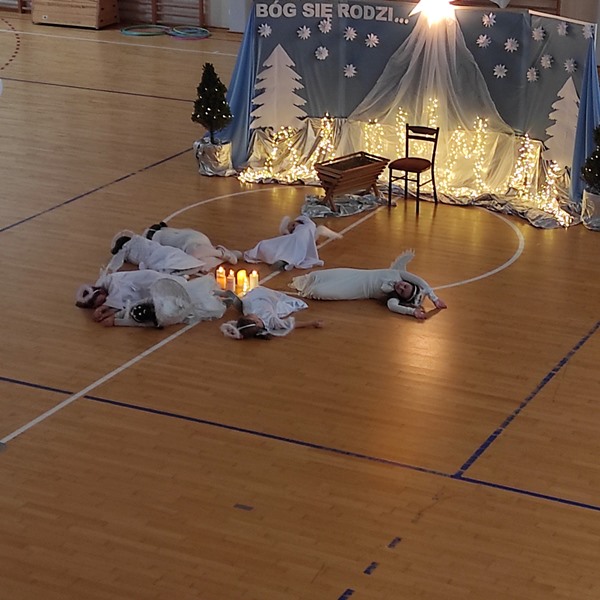Czas na duuuużą dawkę informacji, bo duuuużo działo się dzisiejszego dnia w naszej szkole. Moc atrakcji przygotowali dla nas nie tylko nauczyciele i uczniowie wraz z SU, ale również zaproszeni goście i rodzice. Świętowanie rozpoczęliśmy od cudownego występu uczniów w nastrojowych pełnych światła, muzyki i tańca jasełkach. Po magicznych jasełkach było można wysłuchać kolęd zagranych przez naszych uczniów. Był również czas na taniec, ten nowoczesny i bardziej tradycyjny oraz pokaz karate. Przygotowano także stanowiska, gdzie można było przejść kurs udzielania pierwszej pomocy na specjalistycznych fantomach. Panie ze świetlicy zorganizowały dla dzieci i ich rodziców zajęcia świetlicowe. Nauczyciele wychowania fizycznego zadbali o to, aby nasi goście aktywnie spędzili czas. Zorganizowano więc tor przeszkód dla uczniów, przeciąganie liny przez dzieci i rodziców. Były również moment na ćwiczenia pod okiem trenerki fitness. Można było oczywiście zakupić pamiątki, nie tylko świąteczne, książki, wypić ciepłą, aromatyczną herbatkę lub kawkę i zjeść pyszne słodkości. Odbywały się również licytacje. W międzyczasie wręczano nagrody uczniom za udział w konkursach na świąteczne przebranie i konkursie plastycznym: ,, CO ROBIĄ ANIOŁOWIE I ŚWIĘCI W NIEBIE?" Część uczniów skorzystała z przygotowanego kącika stylizacji, gdzie można było zapleść kolorowe warkoczyki, inni natomiast woleli zanurzyć się w świecie robotów...Czy to już wszystkie atrakcje dzisiejszego dnia? Oczywiście, że nie.