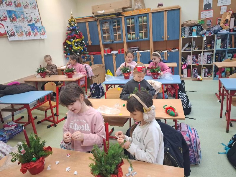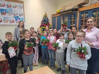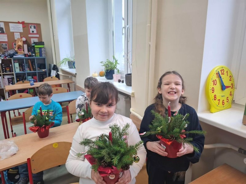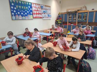 Przygotowując się do Świąt Bożego Narodzenia, uczniowie klasy 2b wzięli udział w warsztatach świątecznych pod okiem pani Jagody, która pomogła dzieciom stworzyć piękne stroiki na wigilijny stół.