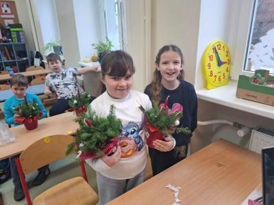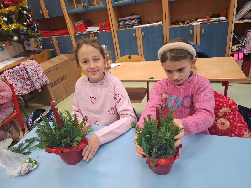Oprócz kreatywnego ozdabiania, uczniowie poznali konstrukcję tworzenia stroików doniczkowych z wykorzystaniem żywego świerku. Przepiękne stroiki wykonane przez naszych zdolnych uczniów niewątpliwie ozdobią świąteczne stoły.