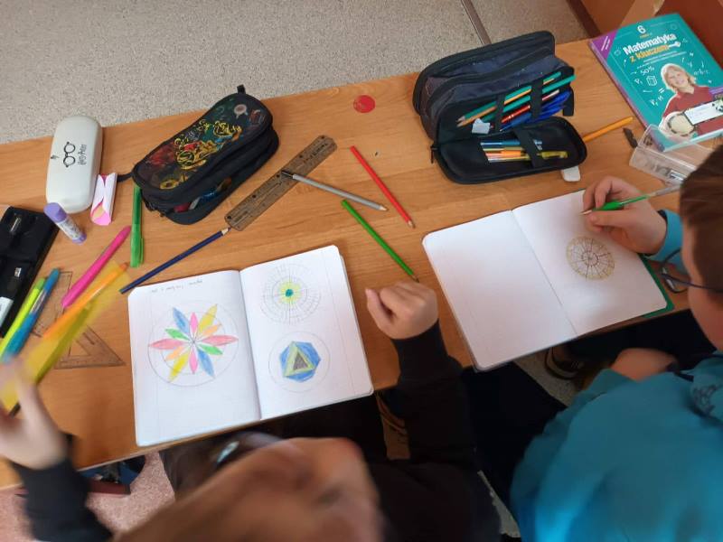 Na lekcjach matematyki uczniowie klas 6a i 6b tworzyli mandale z użyciem cyrkla i w ten sposób ćwiczyli precyzję oraz dokładność. Zajęcia pokazały, że matematyka może być kreatywna i ciekawa, a nauka może sprawiać przyjemność!