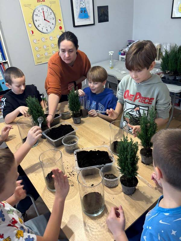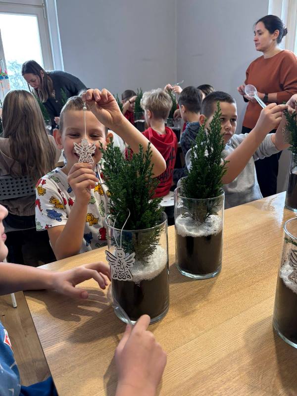 Wczoraj klasa 3a wzięła udział w warsztatach świątecznych w Centrum Edukacji Kreatywnej „BAZA”. Dzieci wykonały świąteczny las w szkle.